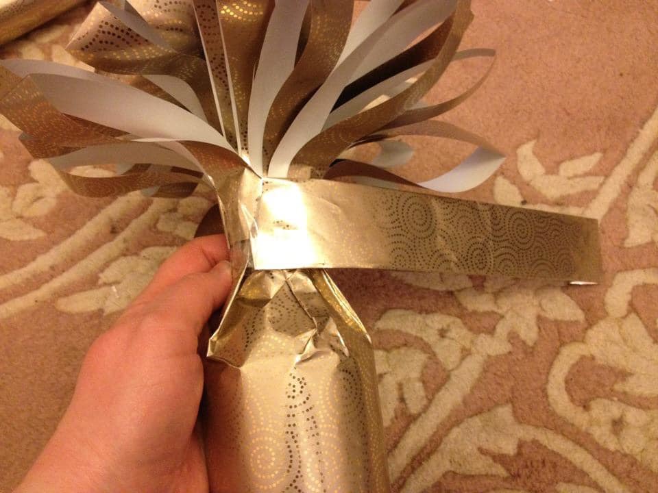 Scrunch the top tight and use LOTS of sellotape. It's got to hold all the frills so you don't want it being flimsy here. Don't worry about it looking messy, you won't see this part later.